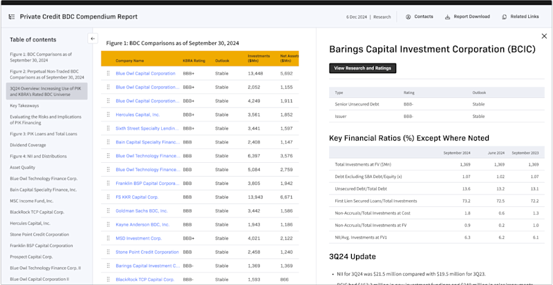 KBRA Premium delivers comprehensive coverage across the Private Credit markets including funds, BDCs, asset managers, and structured credit-equipping users with transparent and comprehensive rating reports.